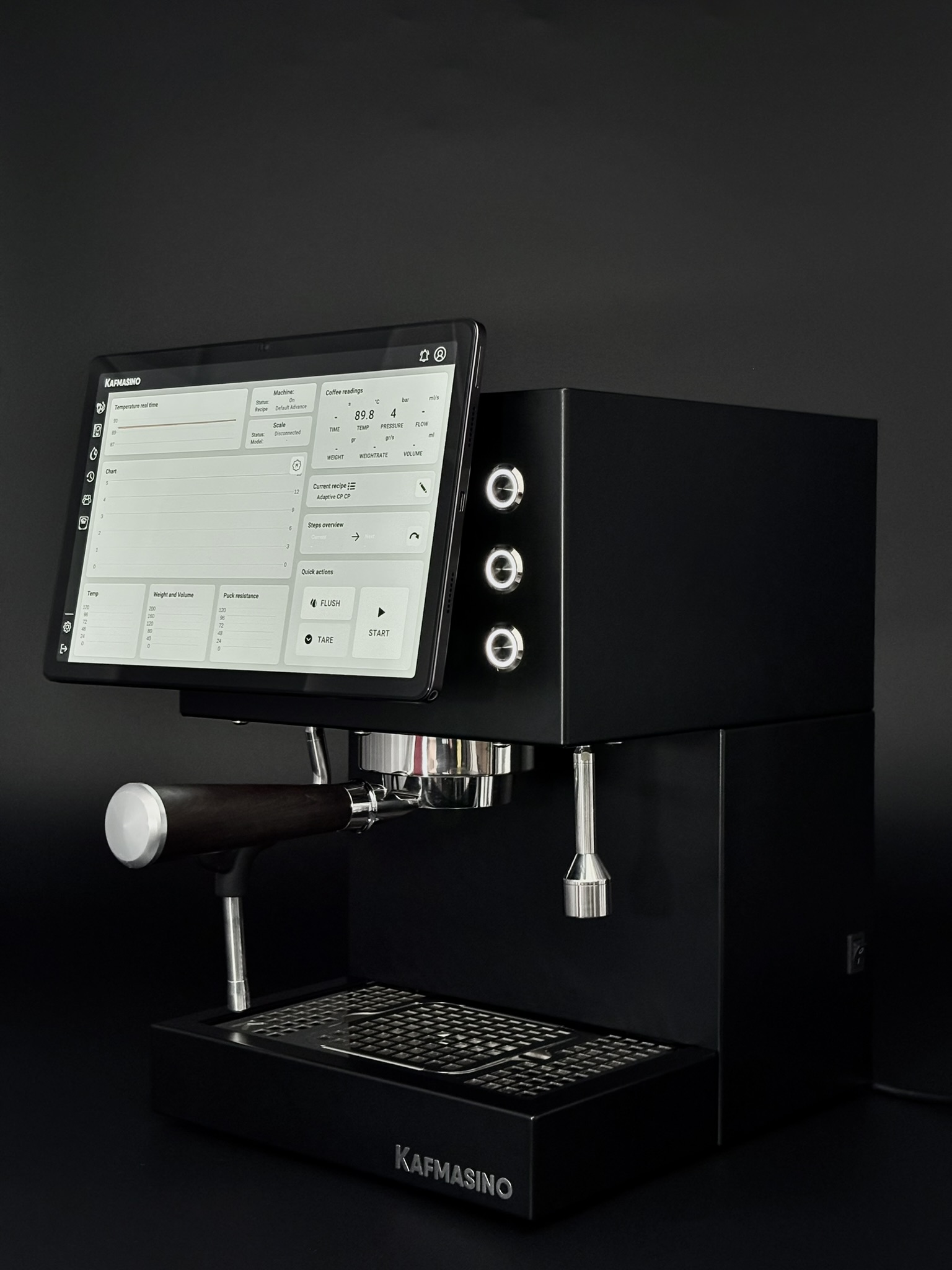 At Kafmasino, we believe that making the perfect espresso shouldn’t depend solely on the barista’s skill, but also on precise and accessible tools. That’s why we design our machines with a focus on complete control over pressure, temperature, and flow, all manageable from the touchscreen or our app. We want every cup to be reproducible, delicious, and fun to make.